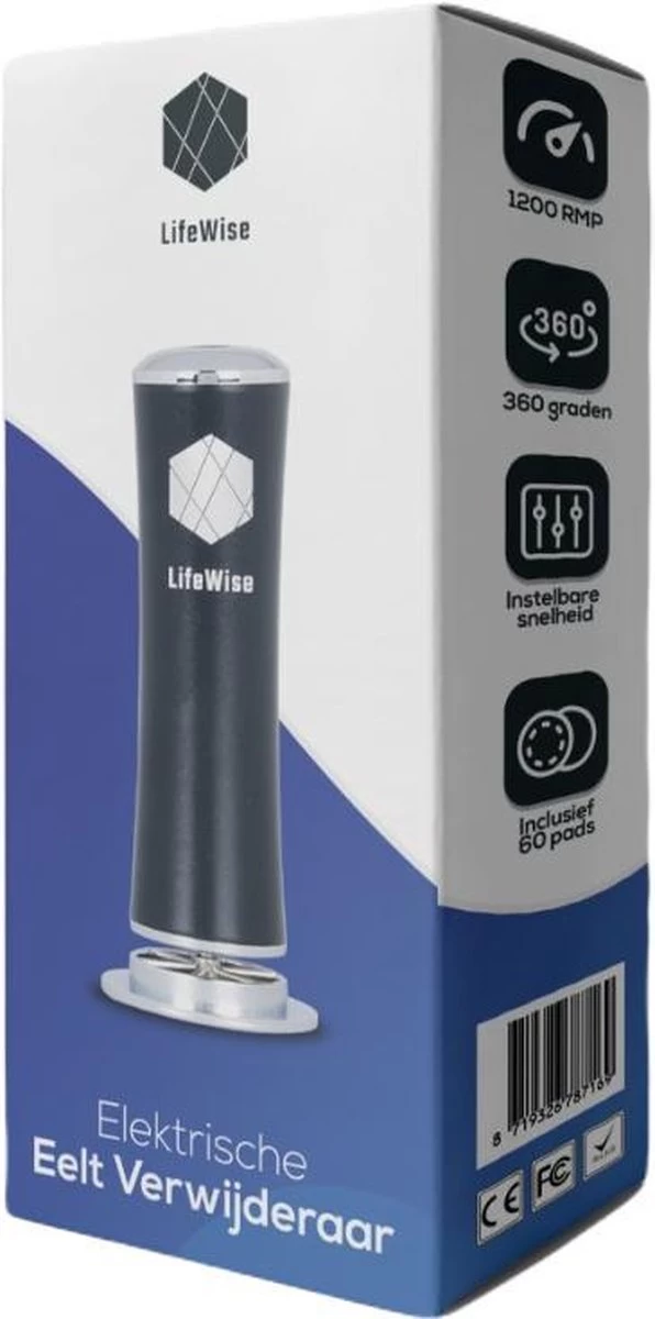 - In de verpakking: 1x LifeWise Elektrische eeltverwijderaar, 1x netstroom adapter, 1x afstandsbediening, 60x vervangbare schuurpads.